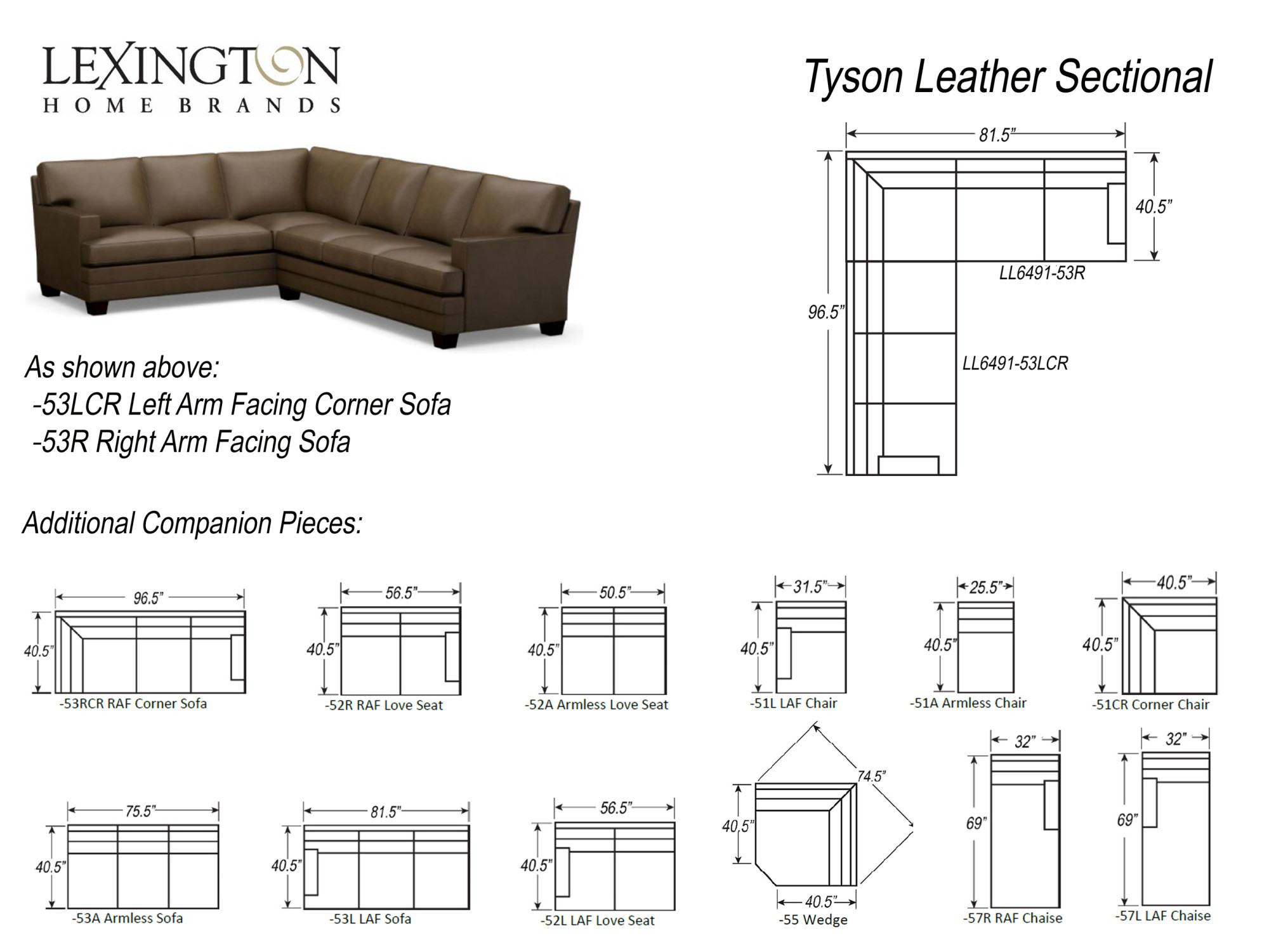 Design your Couture Leather sectional by selecting your: 1-Frame 2-Scale 3-Style 4-Seat Cushions 5-Back Cushions 6-Arm Style 7-Base 8-Body Welt 9-Nailhead Trim (optional), and 10-Leather. There are a multitude of configurations to build sectional. Print the tear sheet to see the frames options and sizes as the arm style determines the overall width.